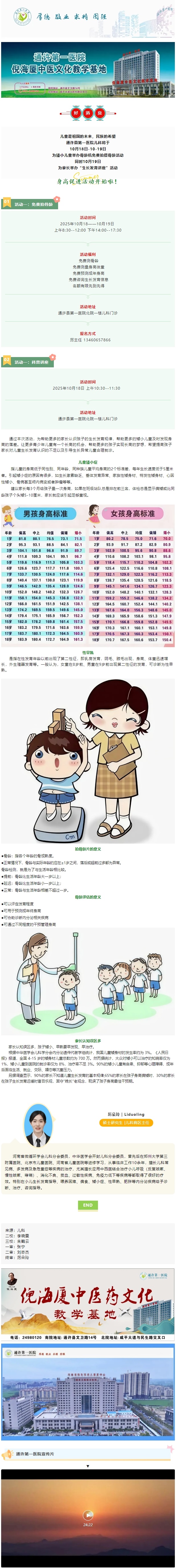 【好消息】通许县第一医院儿科将于10月18日-10-19日为矮小儿童举办骨龄机免费拍摄骨龄活动!