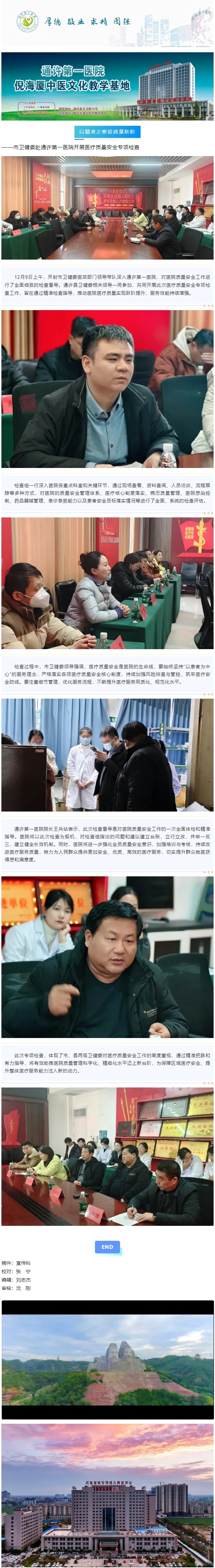【新闻快讯】以精准之察促质量跃阶——市卫健委赴通许第一医院开展医疗质量安全专项检查!