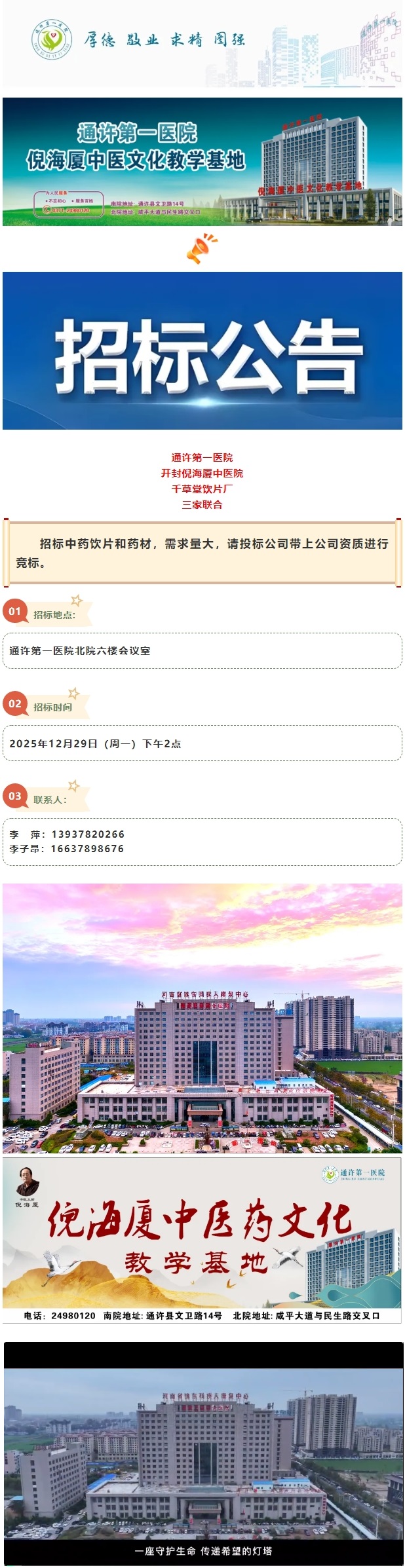 【招标】通许第一医院、开封倪海厦中医院、千草堂饮片厂招标饮片、药材公开招标!
