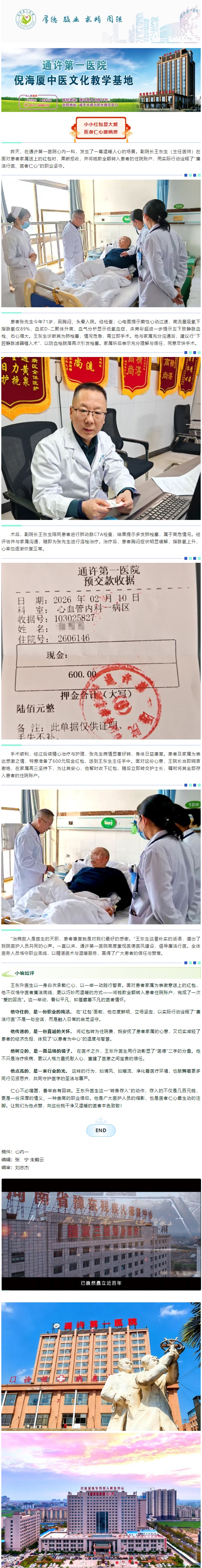 【表扬】小小红包显大爱,医者仁心暖病房!——赞通许第一医院副院长心内(1)科主任王东生。